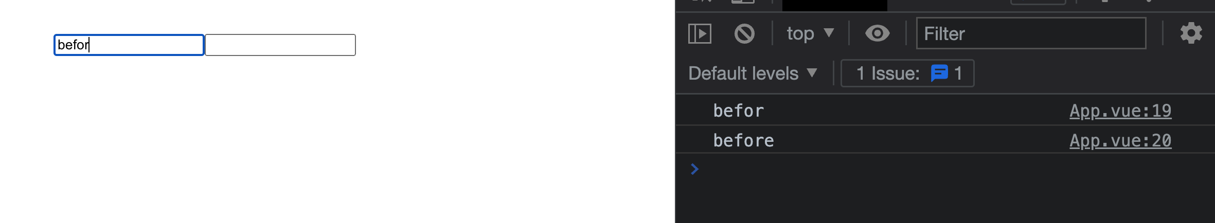 맨 처음 before라는 데이터가 firstName 에 정의되어 있었고, input box에서 e를 제거하면,